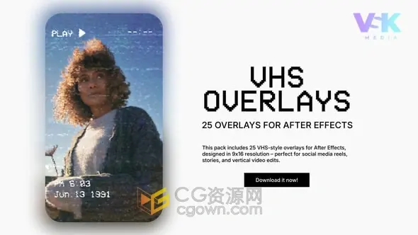 25组模拟VHS视频效果叠加层竖屏分辨率-AE模板